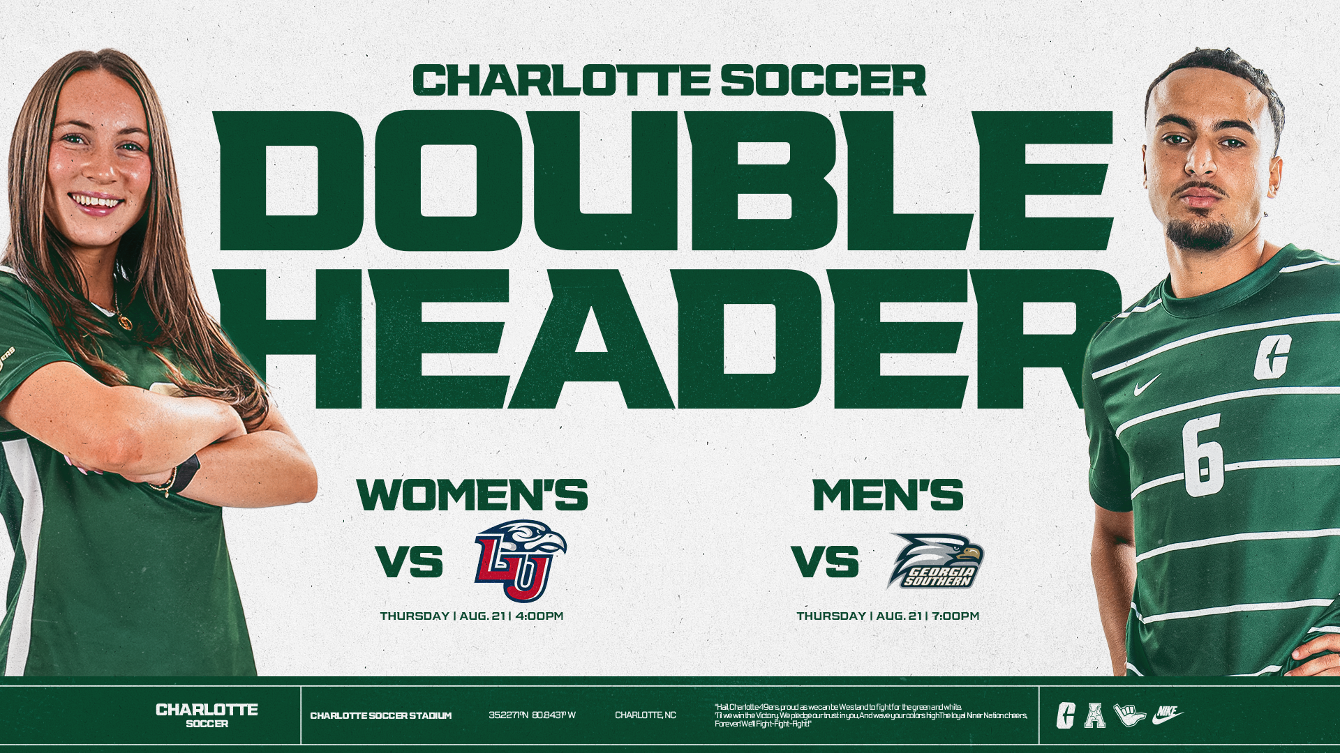 Your Charlotte 49ers Women's Soccer team hosts the Florida Atlantic Owls in this year's International Night! Come out, rep your home country, and cheer on our Women's soccer team with kickoff being at 7pm!