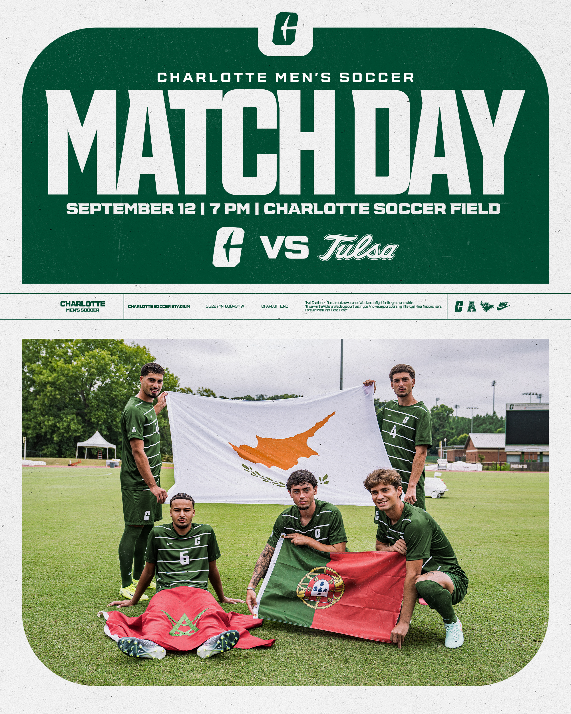 The Charlotte 49ers Men's soccer team hosts Tulsa in this year's International Night. Come out, rep your home country, and cheer on our Men's soccer team in this big in-conference matchup.